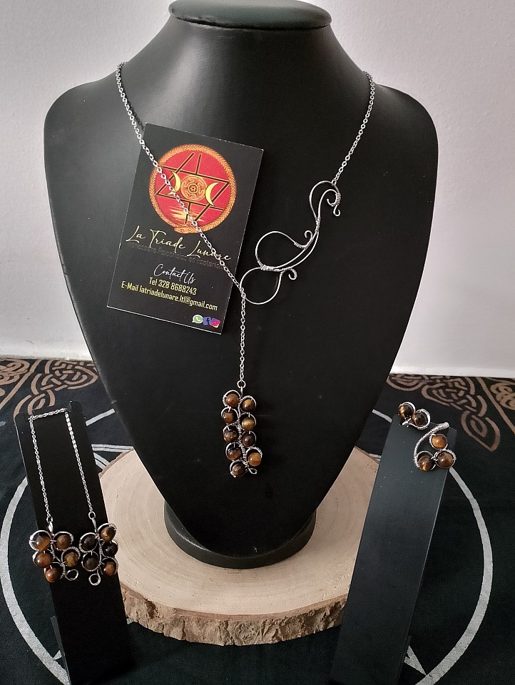 Parure realizzata a mano con acciaio inossidabile e Occhio di tigre.
