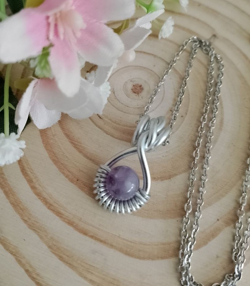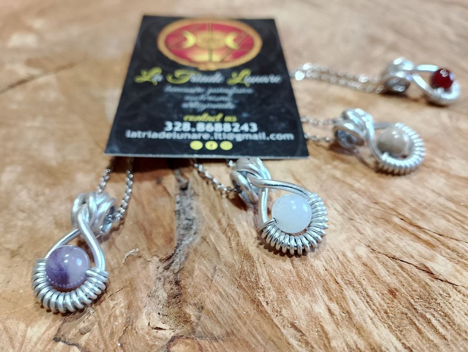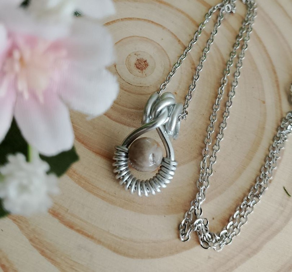Collane con ciondolo in filo in alluminio, pietre naturali e acciaio inossidabileย